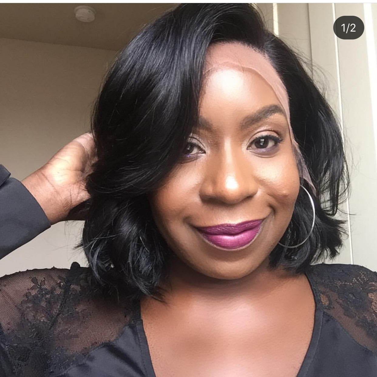 This is the most effortless wig you will ever own. Literally throw it on and go. Precut in layers, so she doesn’t require much work at all.